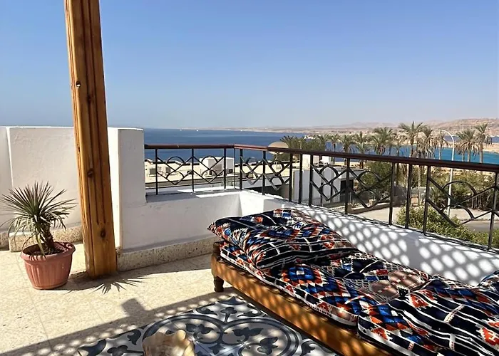 The apartment lies in the El Hadaba district of Sharm el-Sheikh, approximately 20 minutes on foot from Public Beach. Exceptional Sea View Penthouse Apartment is also located just a minute's drive from Mirage Divers.